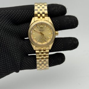 Elevate your style with the Versace Ladies Premium Watch, crafted for women who love elegance with a bold luxury touch. This watch features a high-precision quartz movement paired with scratch-resistant sapphire glass, ensuring long-lasting shine and accuracy.